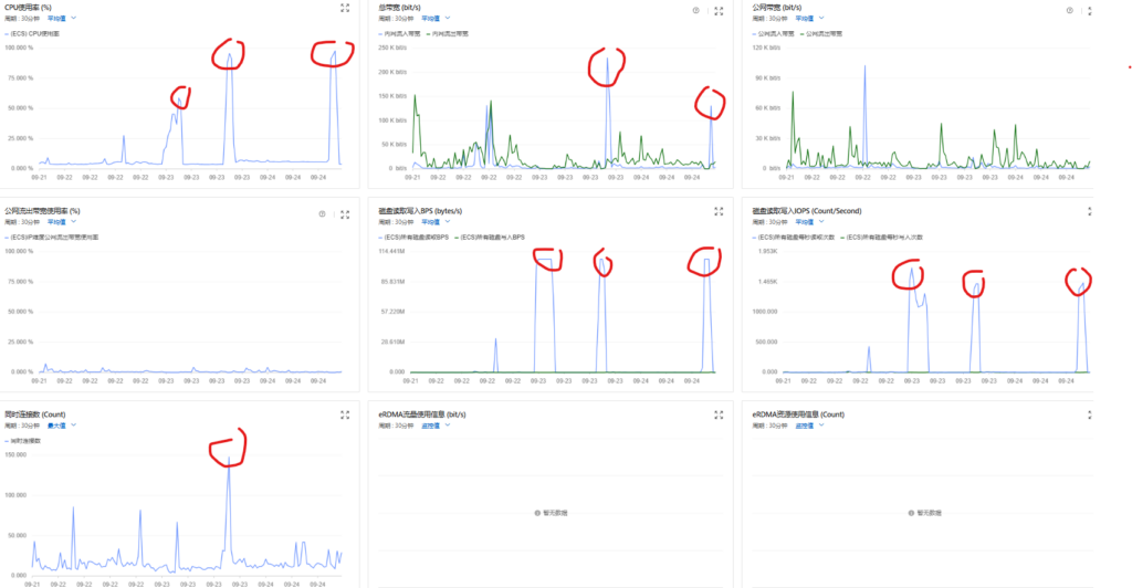 阿里云内全球性能最弱的(一年免费试玩版)本服务器的基础监控图